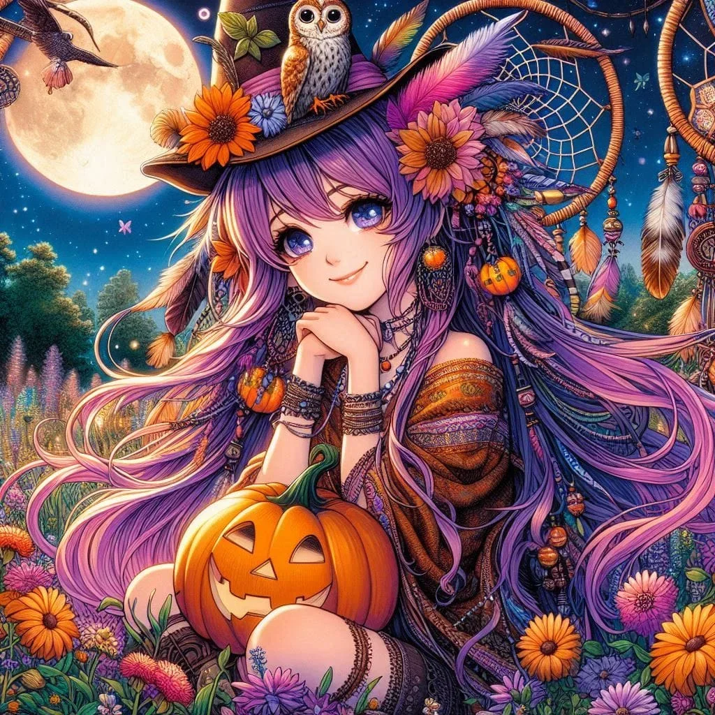 5D Diamond Painting Witch Girl Moon Night Pumpkin (Velvet Cloth) Fairy Dust Drills Full Round&Square Wall DIY Art Crafts Mosaic Picture Kit Home Decoration Gift